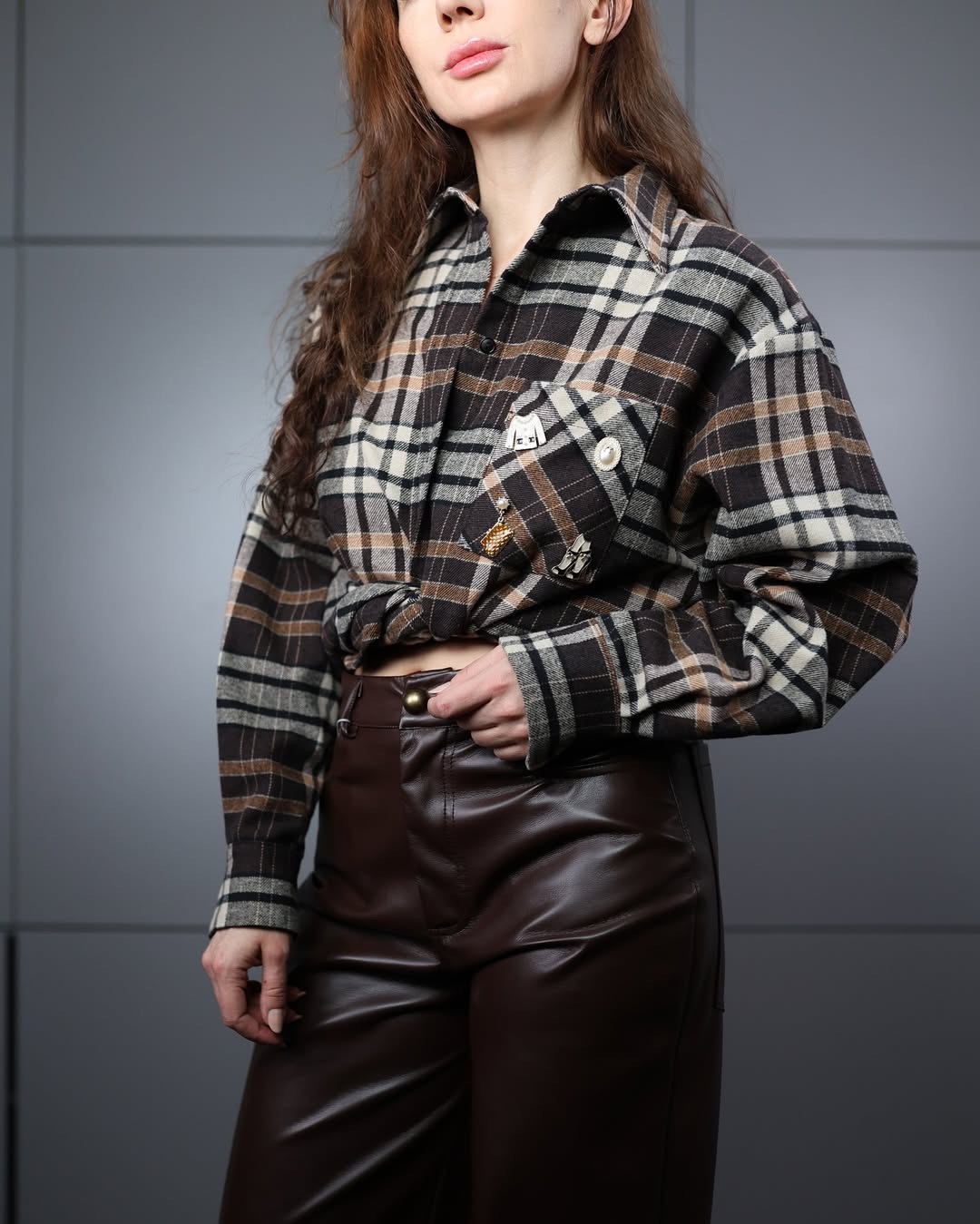 в образах сочетаются с рубашками, водолазками, кроп-топами и жакетами.