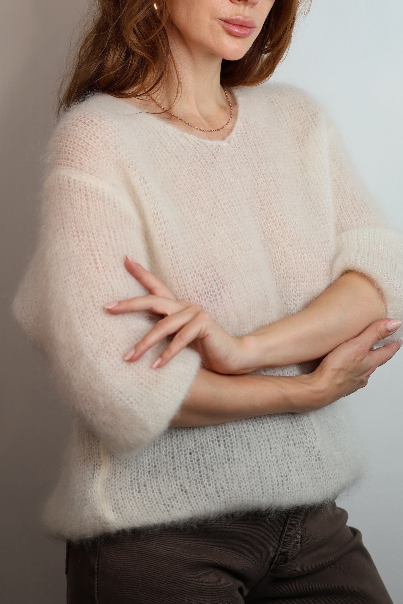 свободный крой со спущенной линией плеча и аккуратным v-образным вырезом подходит как для повседневных образов, так и для вечерних сочетаний.