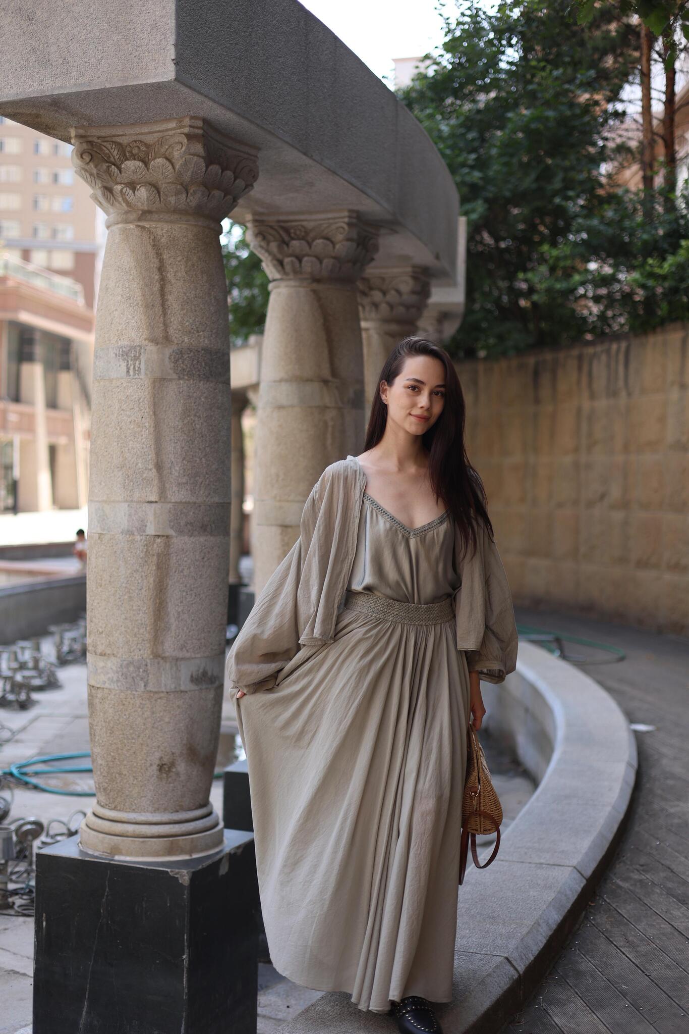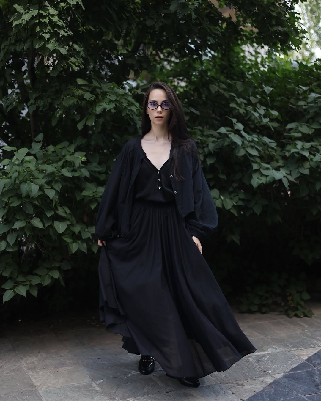 воздушная рубашка из мягкого хлопка с лёгкой жатой текстурой. свободный крой и объёмные рукава-фонарики создают расслабленный, женственный силуэт. отсутствие воротника придаёт образу лаконичность. можно носить заправленной или навыпуск, сочетать с юбками, брюками или платьями.