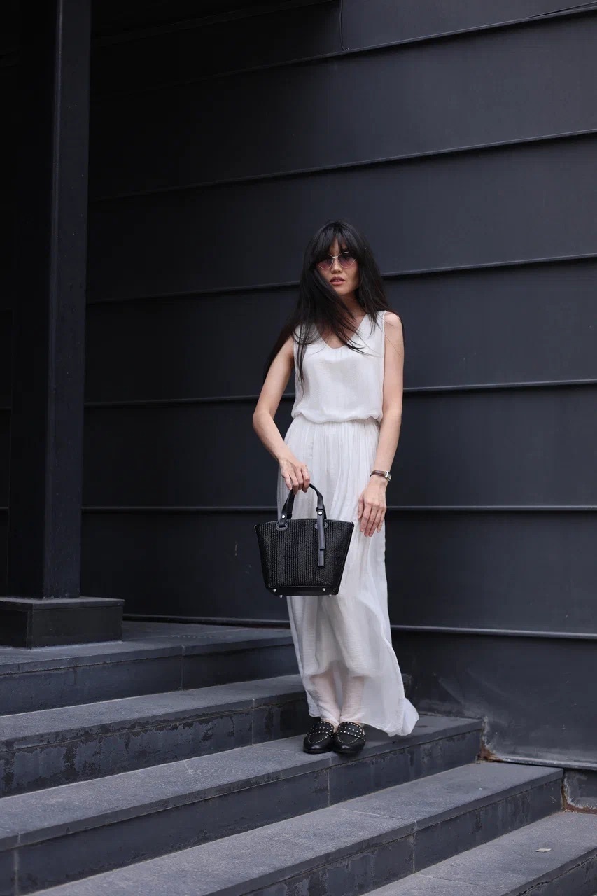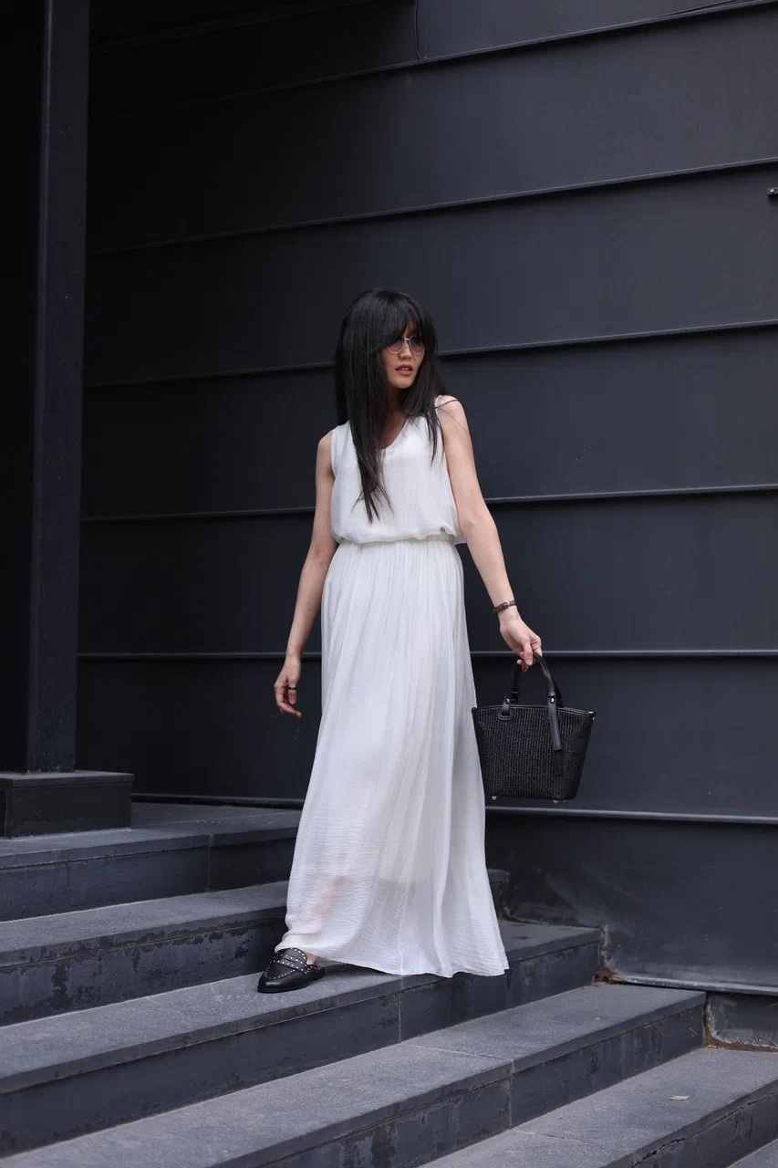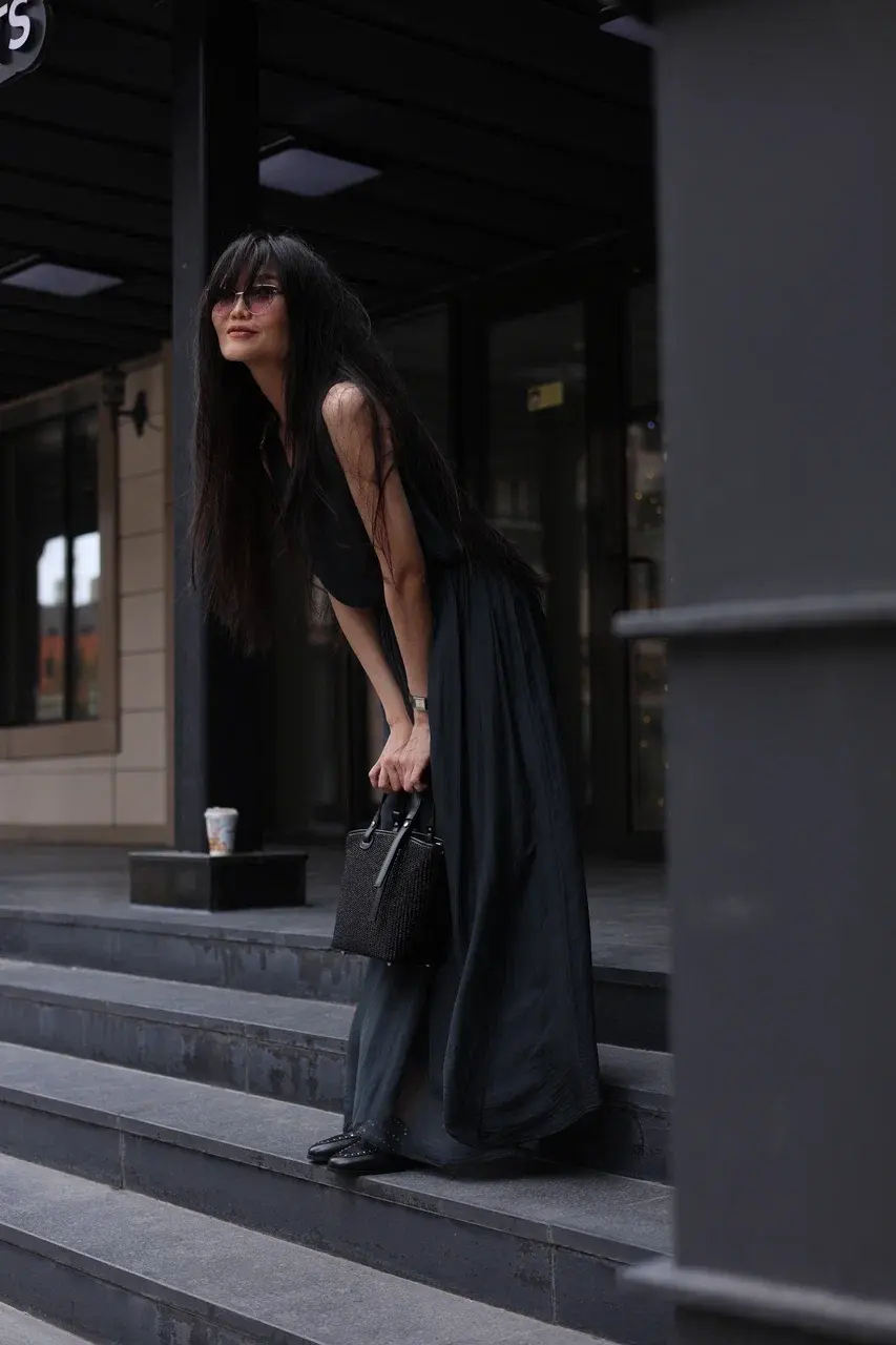 комплект из струящегося топа без рукавов и длинной юбки с резинкой на талии. лёгкий, невесомый и женственный — для летних выходов, прогулок у моря или городских будней.