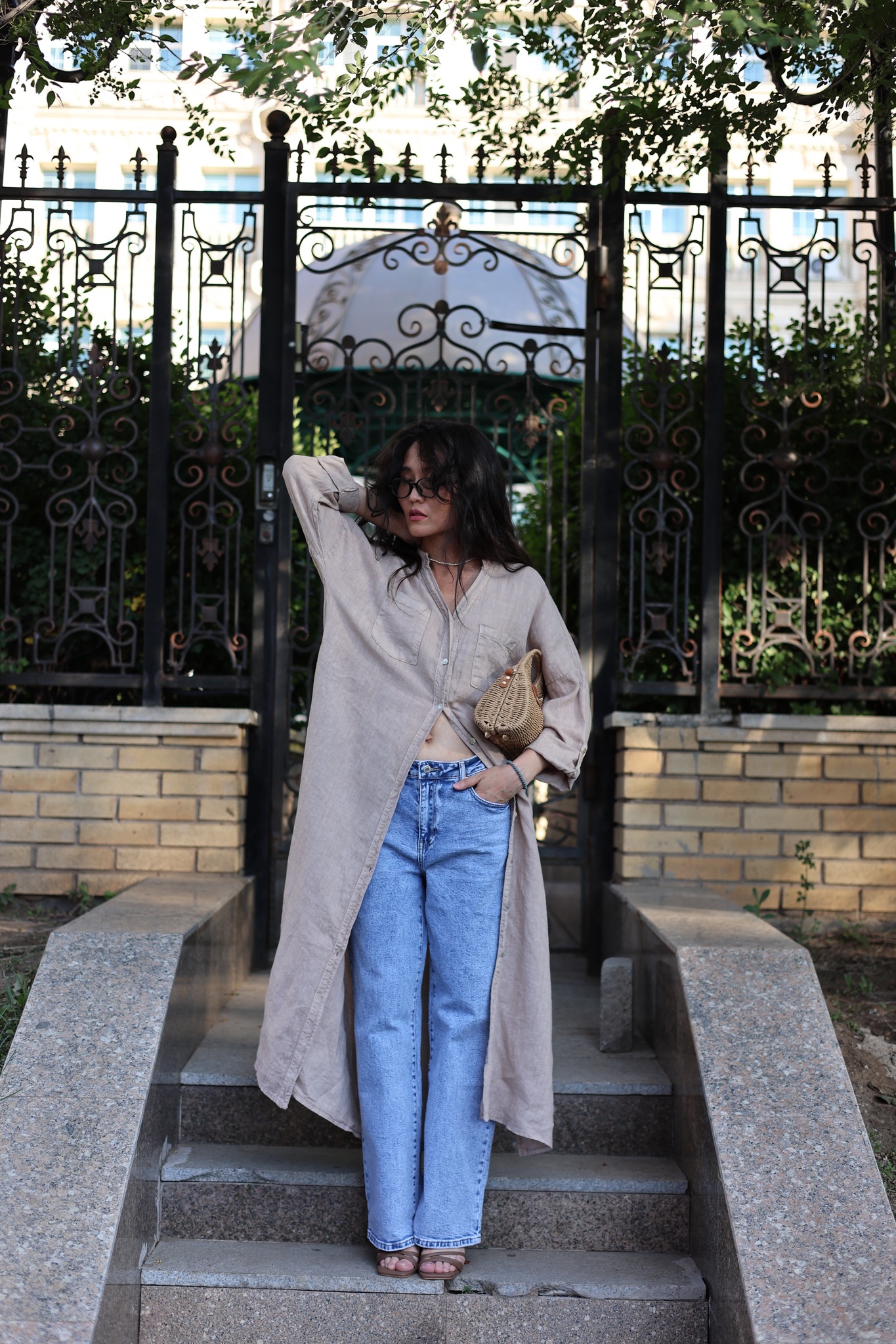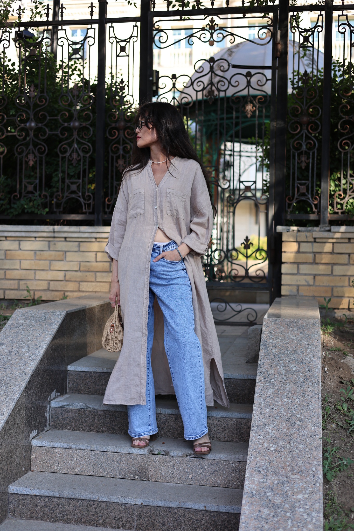 крой прямой, свободный, с высоким разрезом — можно носить как платье, или как лёгкий слой поверх джинс.