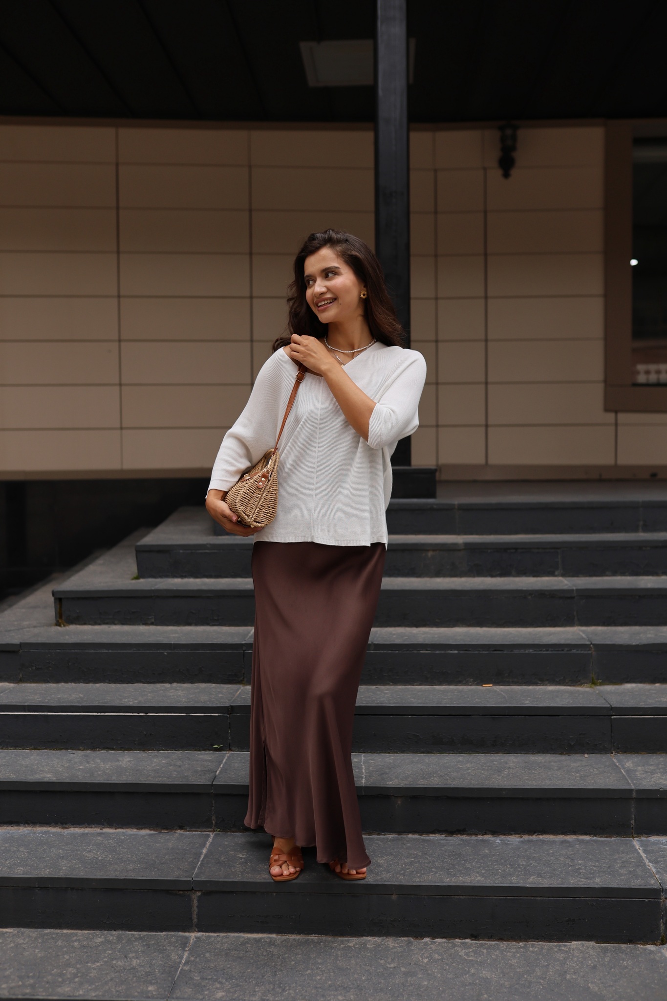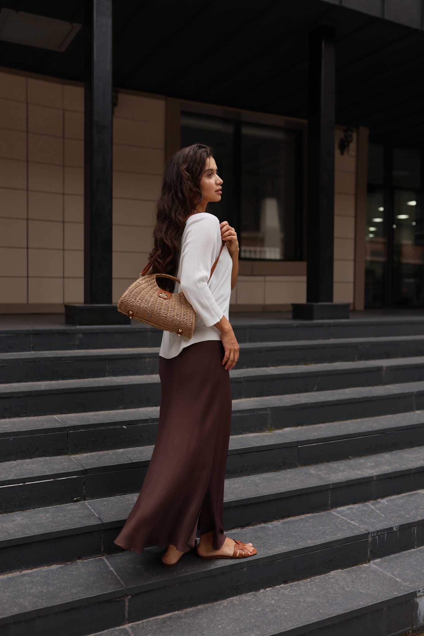 идеально сочетается с юбками из атласа, джинсами или брюками-палаццо.