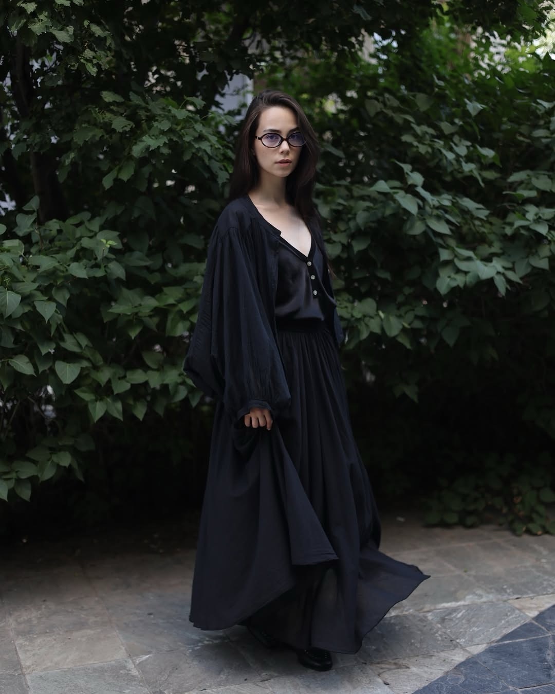 воздушная рубашка из мягкого хлопка с лёгкой жатой текстурой. свободный крой и объёмные рукава-фонарики создают расслабленный, женственный силуэт. отсутствие воротника придаёт образу лаконичность. можно носить заправленной или навыпуск, сочетать с юбками, брюками или платьями.