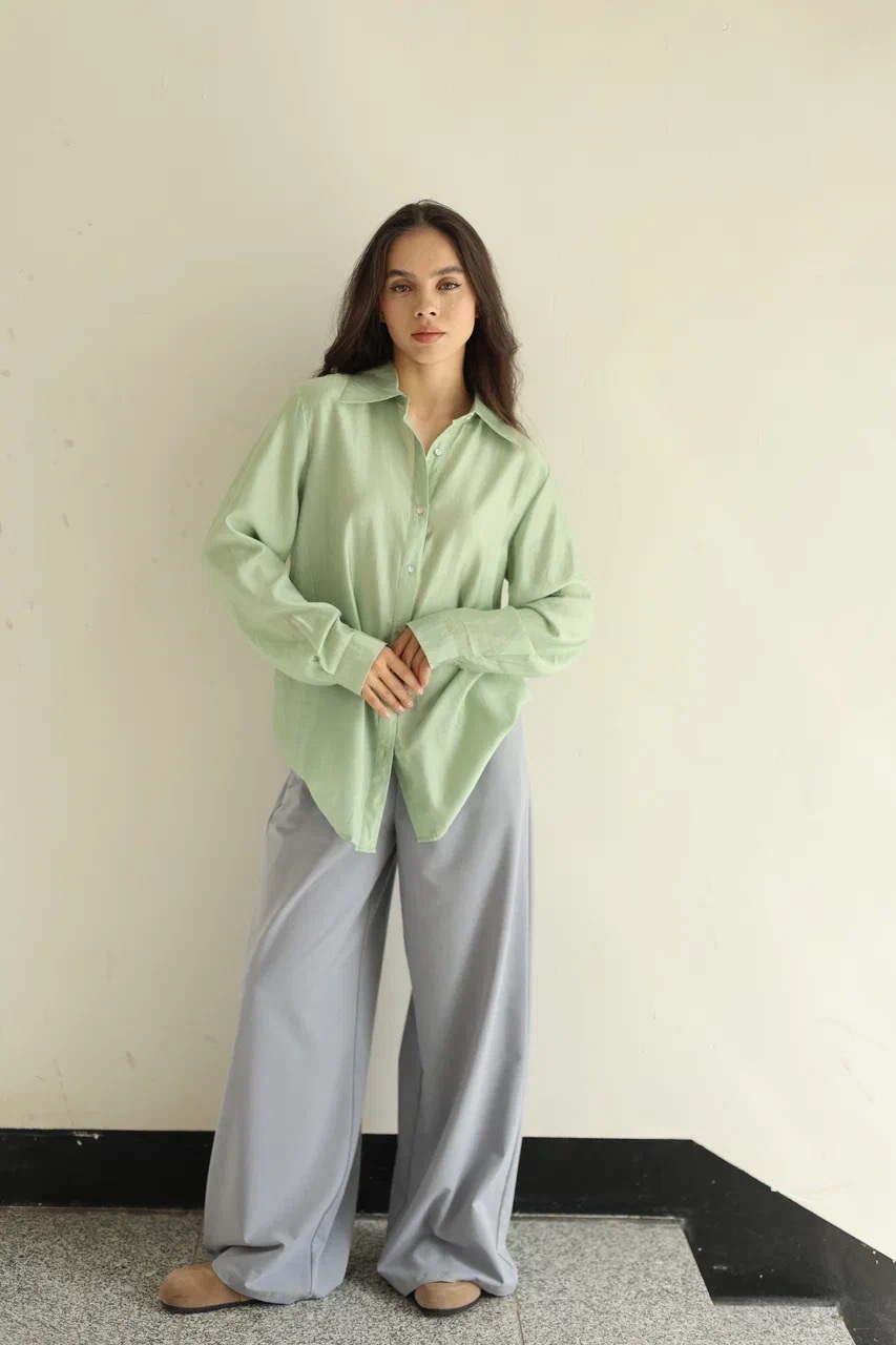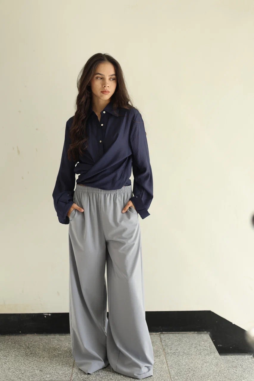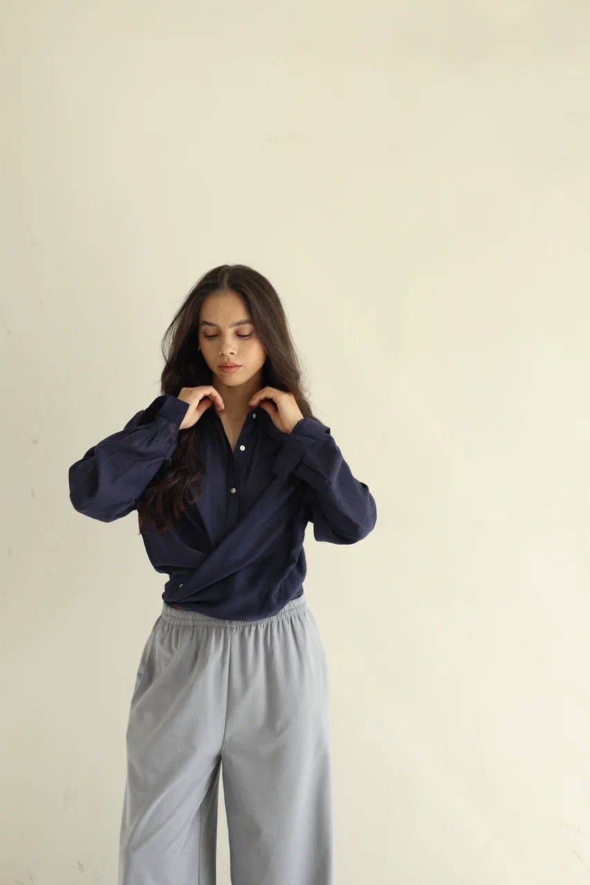 лаконичные и лёгкие брюки прямого кроя на мягкой резинке. свободная посадка и струящаяся ткань создают расслабленный силуэт. удобно сидят на талии, не сковывают движений и легко комбинируются с рубашками, джемперами или жакетами.