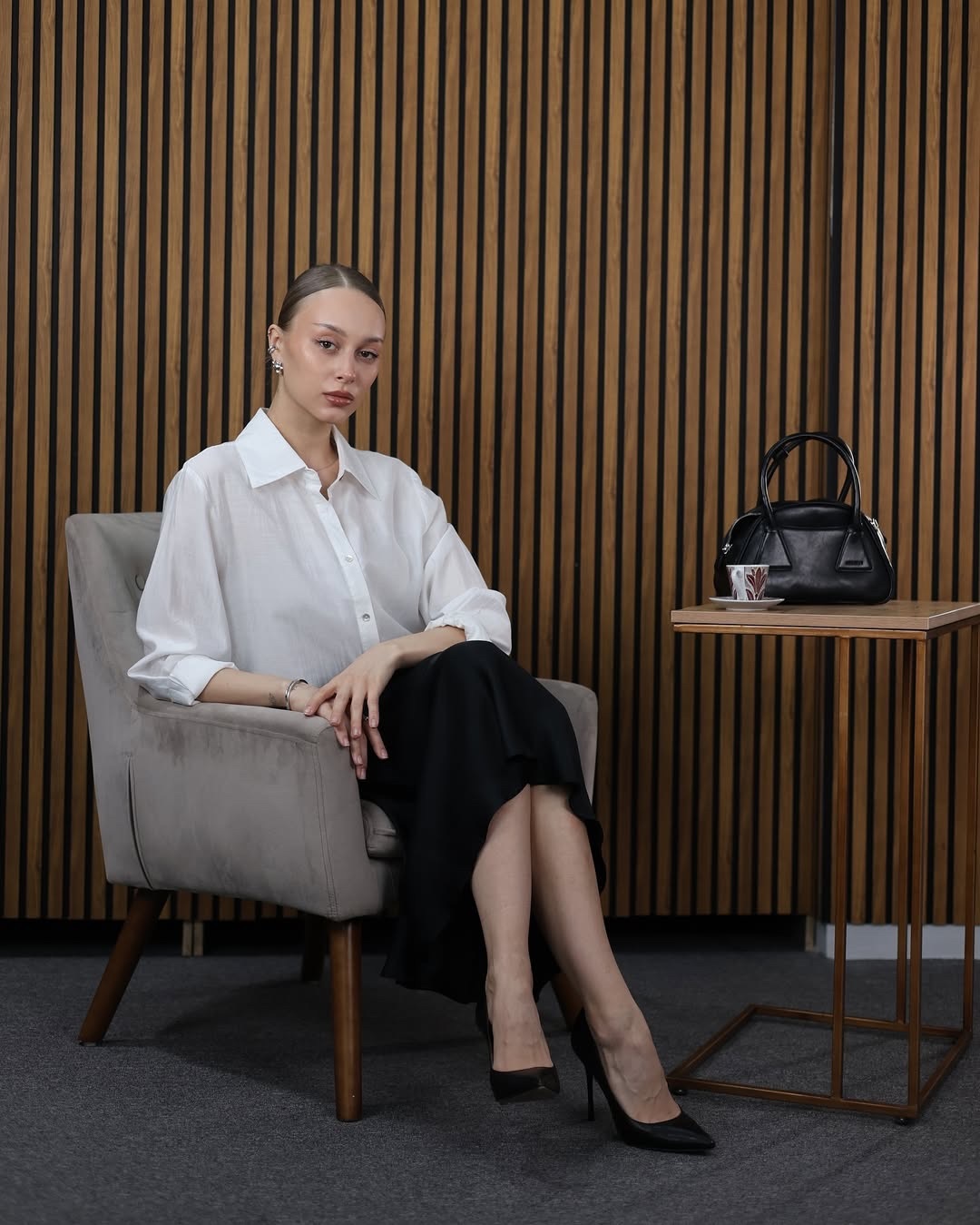 мягко струится по фигуре, создавая лёгкий и женственный силуэт.