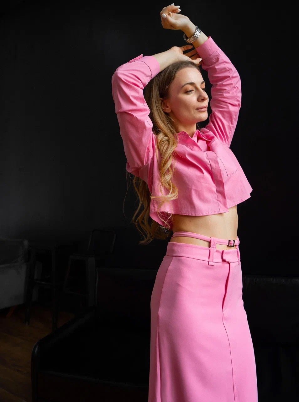 юбка миди с высокой посадкой и оригинальным поясом-ремешком. плотная, но комфортная ткань держит форму и подчёркивает линию бёдер. универсальная основа для летних образов — носите с кроп-топами, рубашками или базовыми футболками.