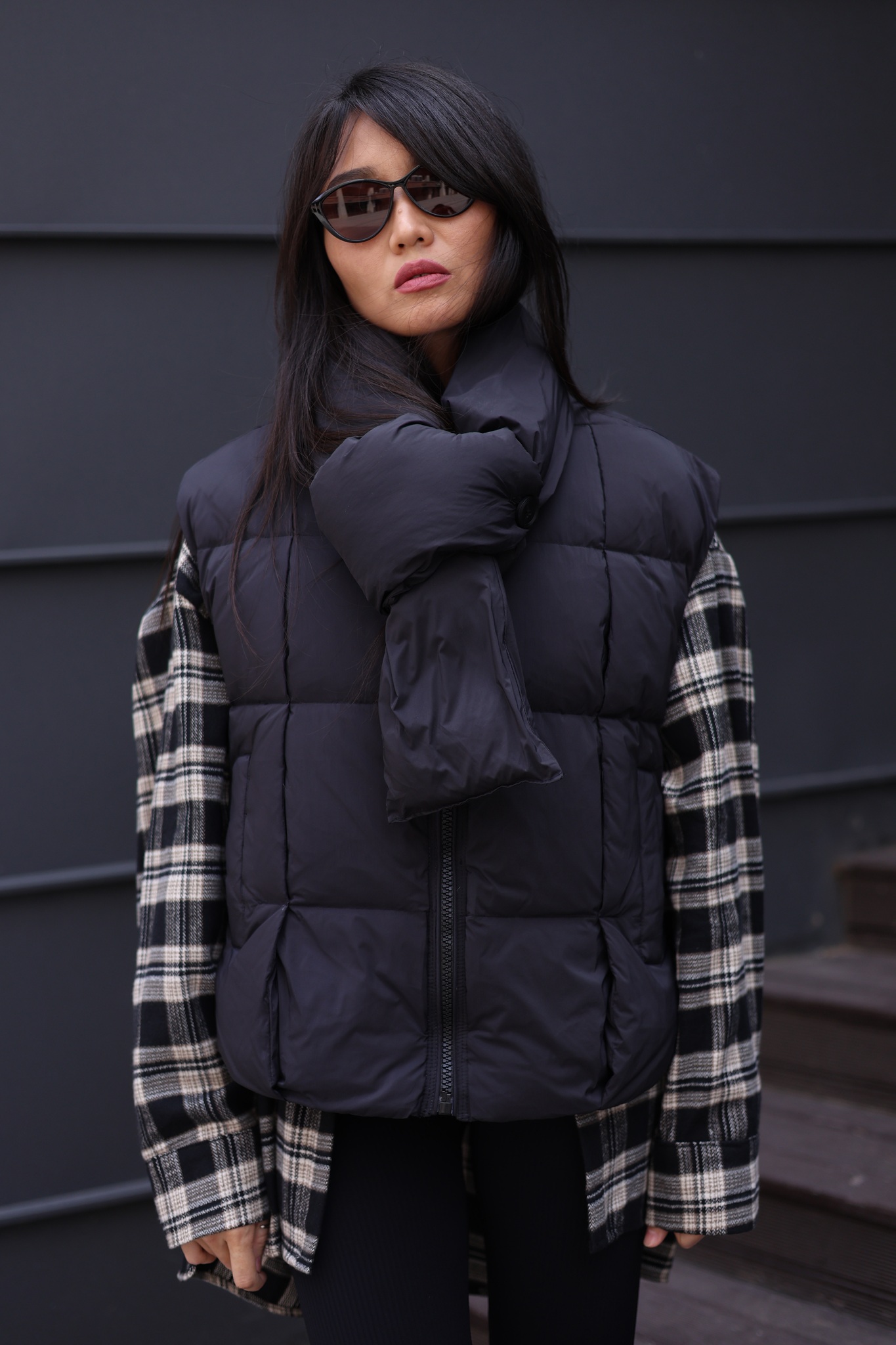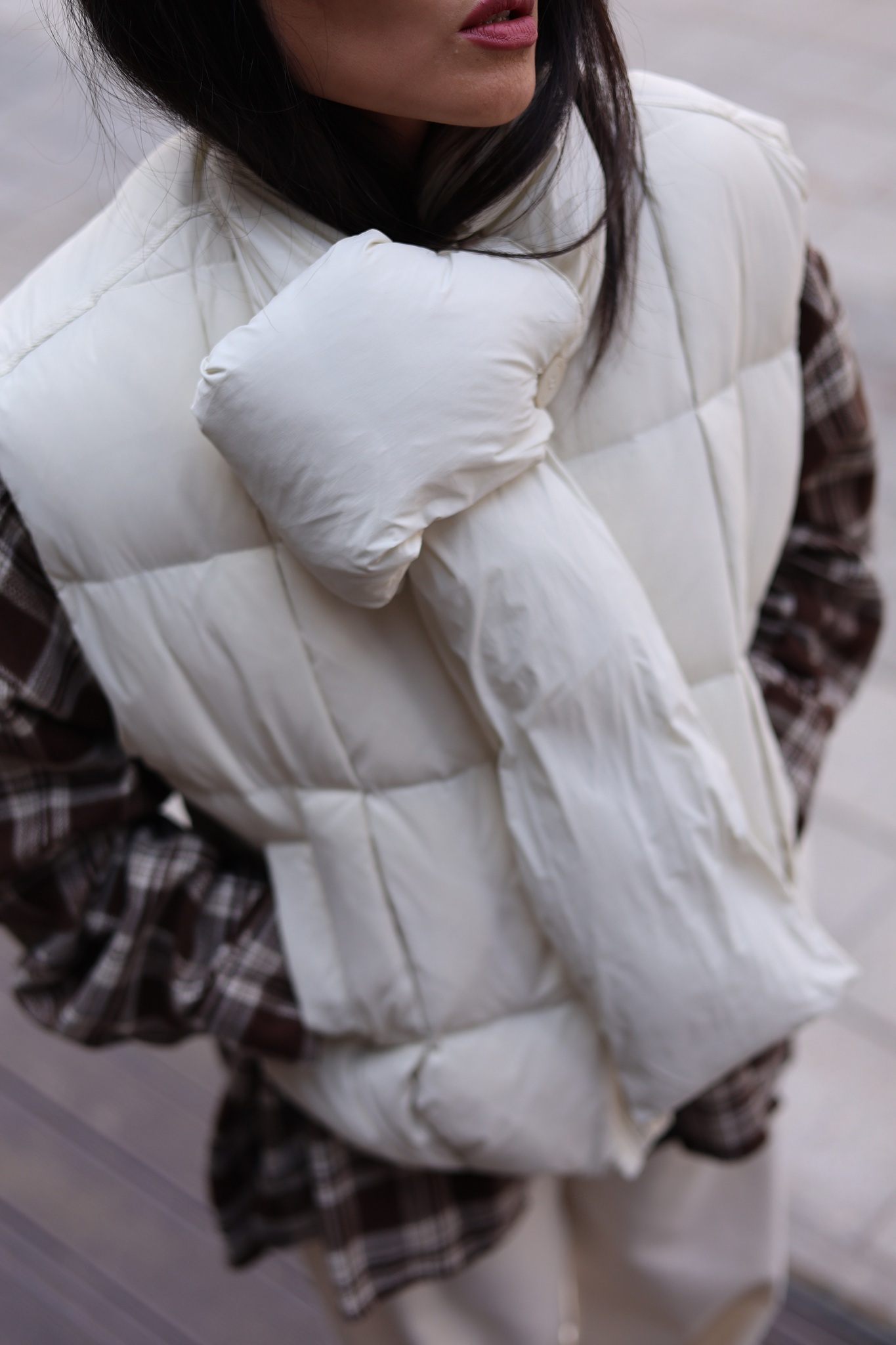 объёмная стёжка, плотный наполнитель и высокий ворот с запахом — надёжная защита от ветра и холода.
