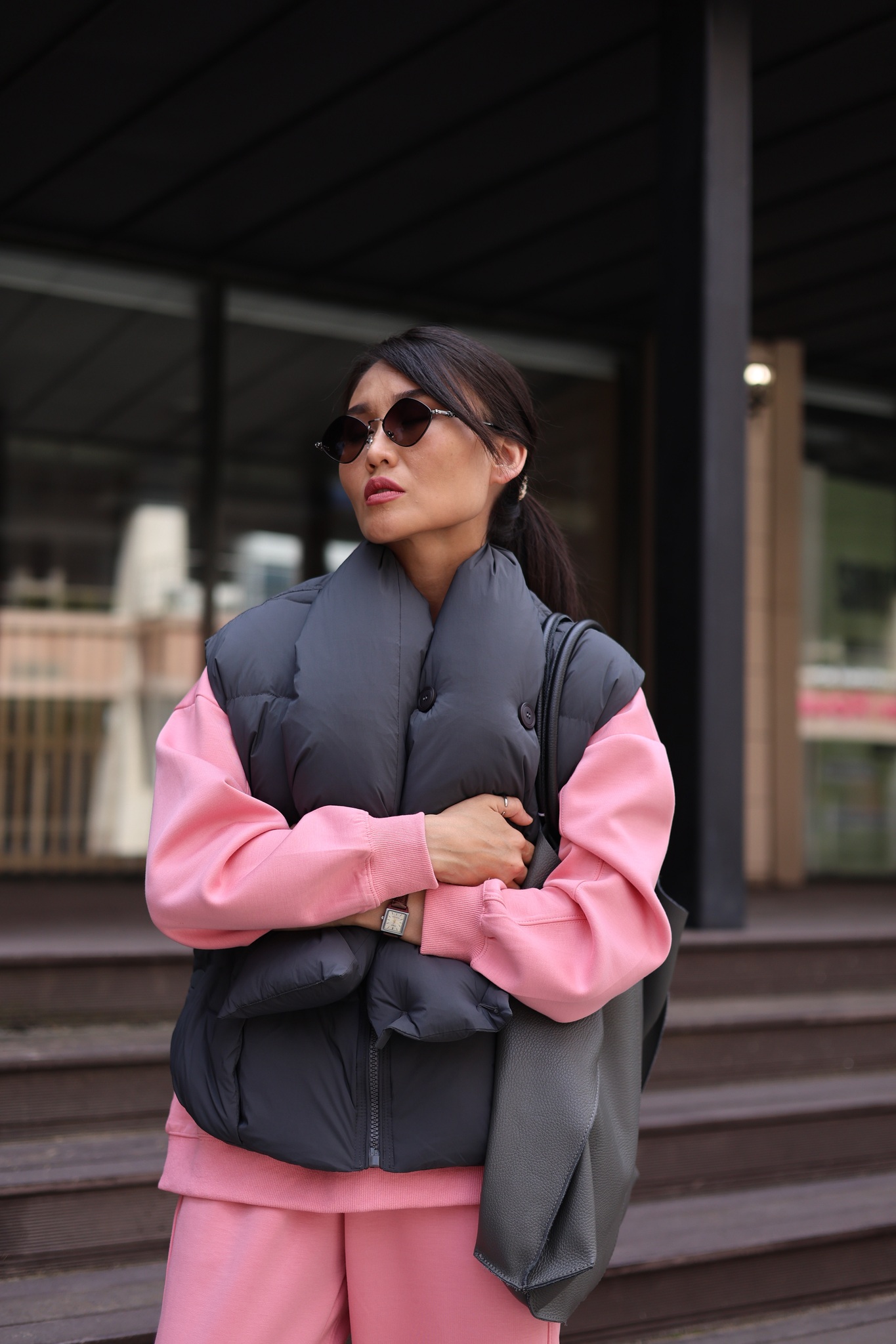 сочетается с рубашками, худи, свитерами, а в тёплую осень — с лонгсливами.