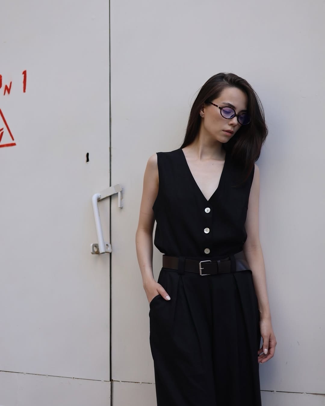 лаконичный жилет на пуговицах с v-образным вырезом. минималистичный силуэт, плотная посадка, подходит как для базовых, так и для акцентных образов.